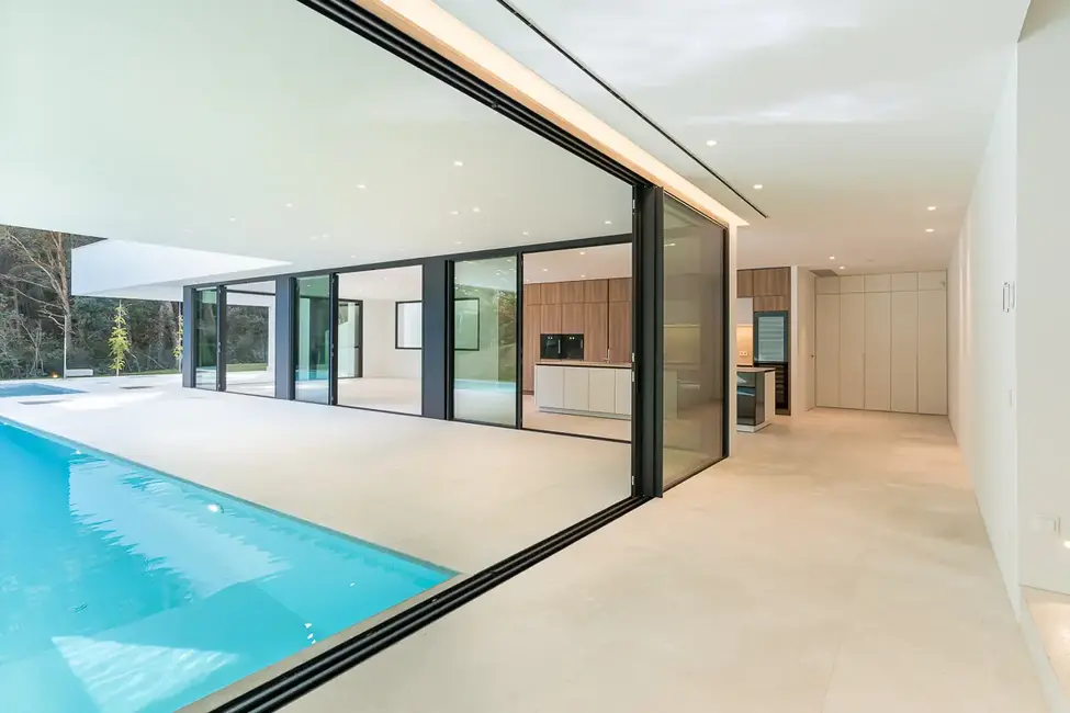 Ein besonderes architektonisches Highlight stellt das Untergeschoss dar: Durch Fenster zum Pool wird diese Ebene mit natürlichem Tageslicht versorgt und schafft eine außergewöhnliche Atmosphäre. Der Bereich eignet sich ideal für ein Fitnessstudio, Heimkino, Lounge-Bereich oder einen exklusiven Weinkeller.