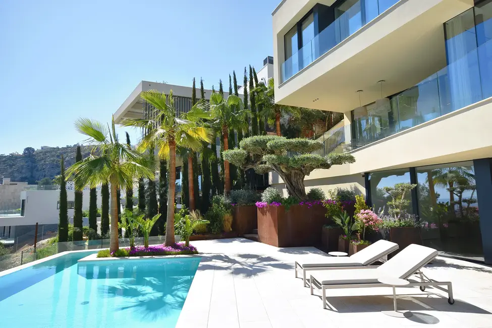 Diese kürzlich fertiggestellte, exklusive Villa in Son Vida, Palma, liegt auf einem großzügigen Grundstück von ca. 2.095 m² und bietet beeindruckende Ausblicke über die Stadt und die Bucht von Palma. Mit einer Gesamtfläche von ca. 668 m², die auf drei Ebenen verteilt ist, vereint die Villa moderne Eleganz und luxuriöse Ausstattung in einem lichtdurchfluteten, offenen Ambiente.