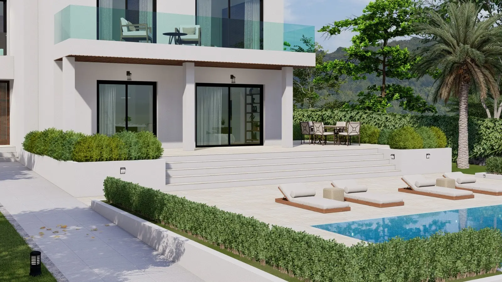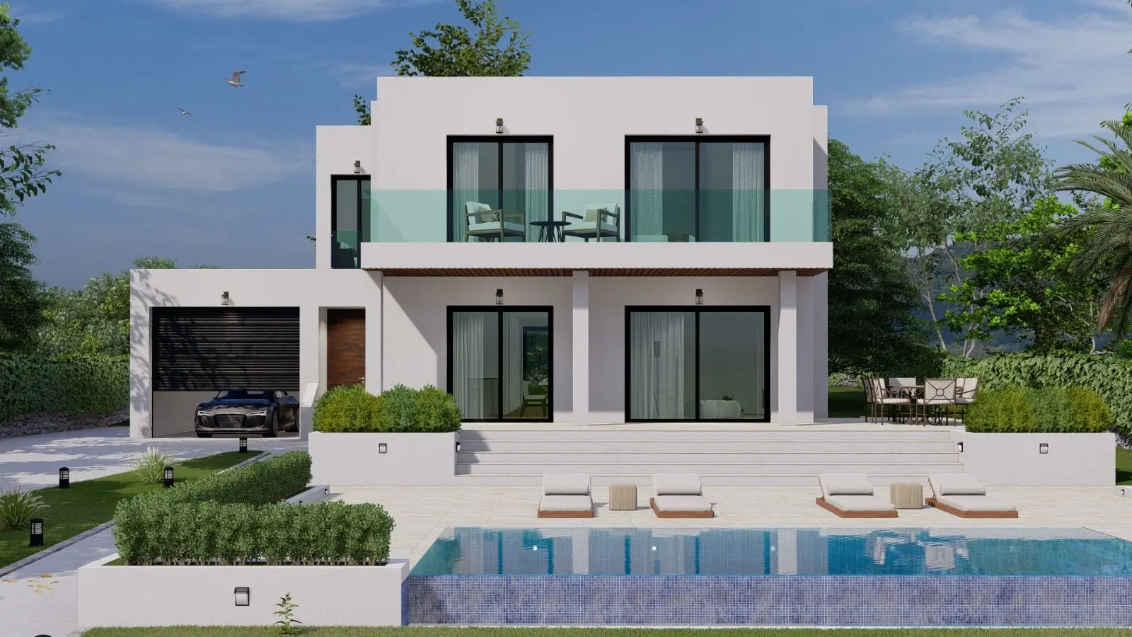 The completion of the luxury property is scheduled for mid-2023 and will feature natural stone floors in the living area, wooden floorboards in the sleeping area, underfloor heating, air conditioning, utility room and garage. The location is ideal: just a few minutes walk away is Club Nautico Santa Ponsa, as well as the beach and the center of Santa Ponsa.