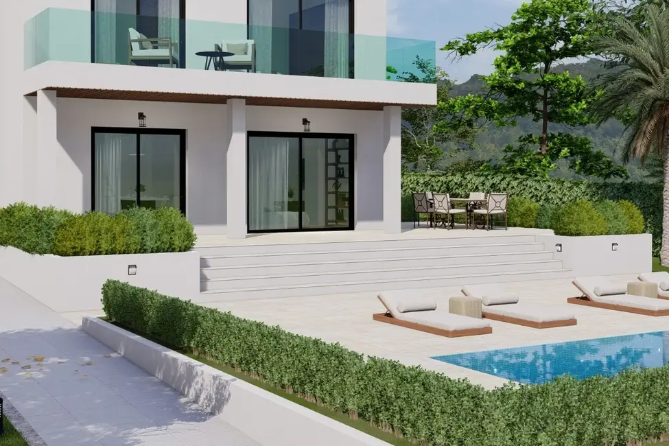 This villa in the sought after area of Nova Santa Ponsa is completely renovated to new build standards. It offers five bedrooms, each with its own bathroom, and an open plan living and dining area with kitchen island. The room layout and number of rooms can still be customized by the buyer. The flat, west-facing lot will feature a large pool surrounded by open and covered terraces for relaxing.