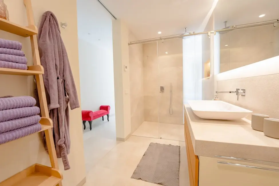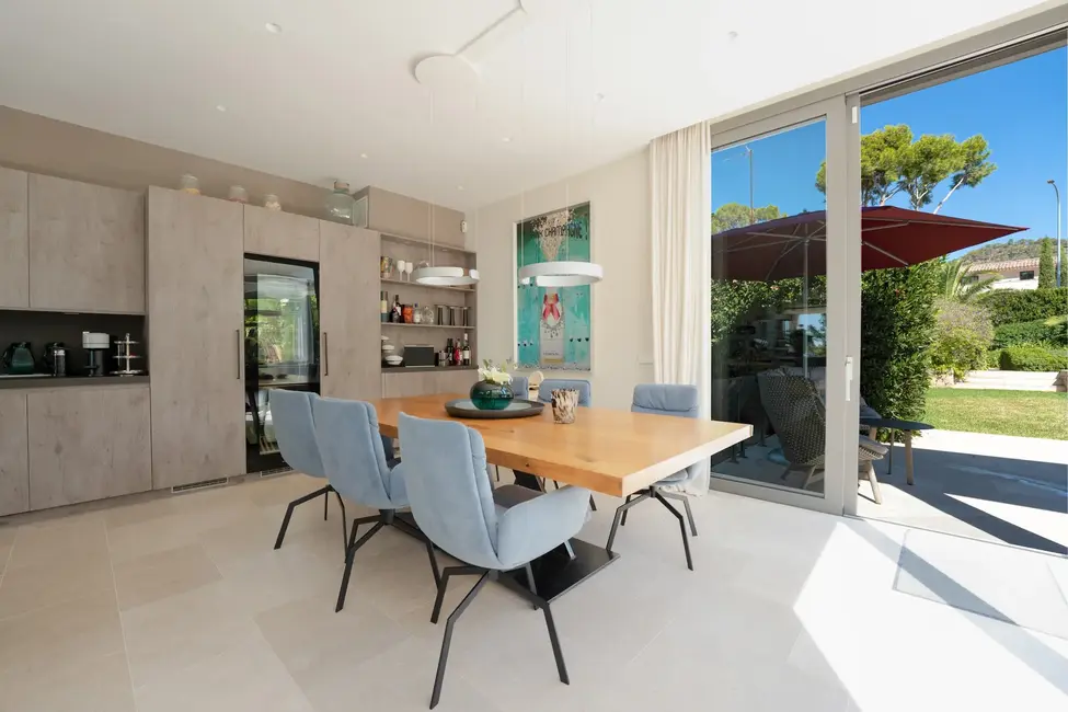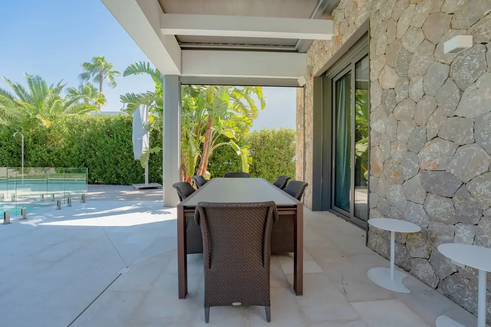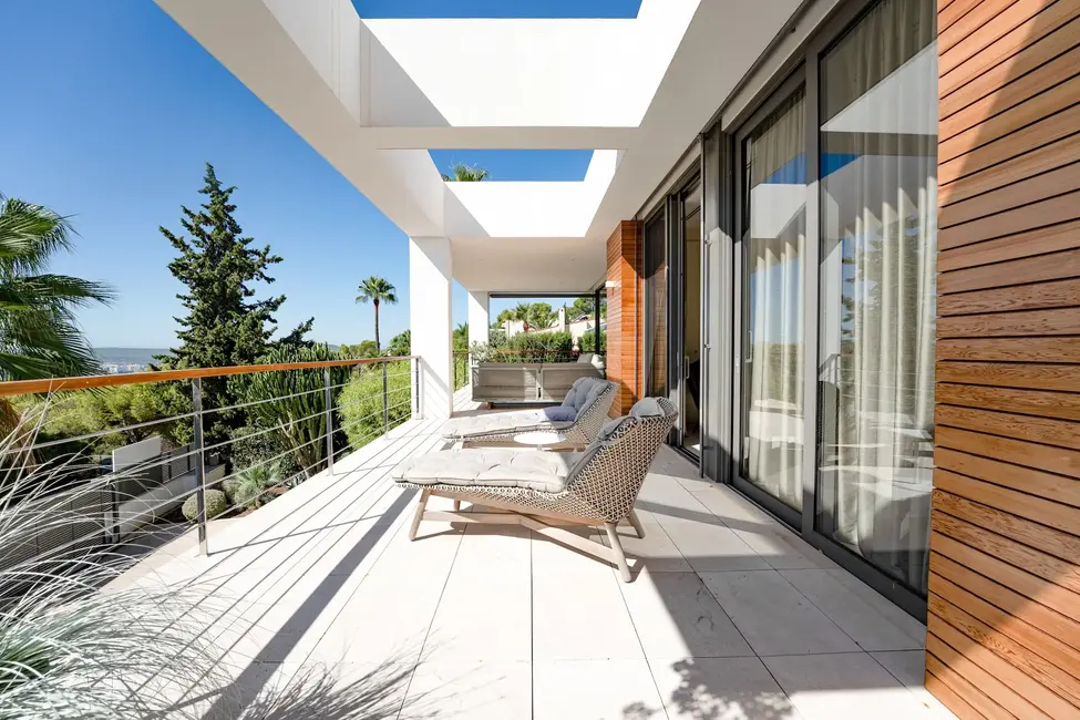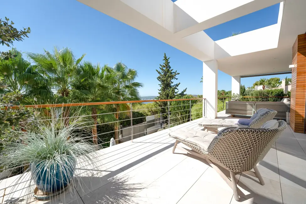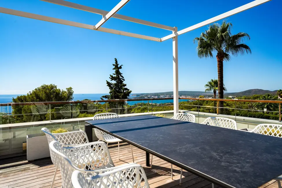 Die Dachterrasse ist ein absolutes Highlight: mit Jacuzzi, Outdoor-Küche und spektakulärem Panoramablick über das Mittelmeer wird sie zum perfekten Ort für Entspannung und gesellige Abende.