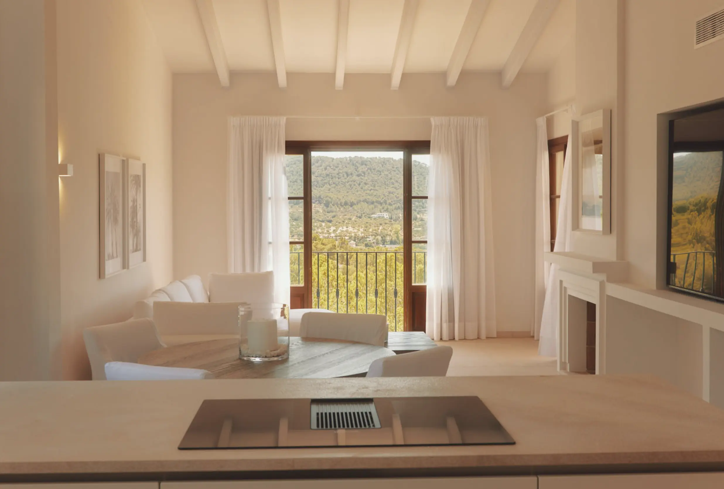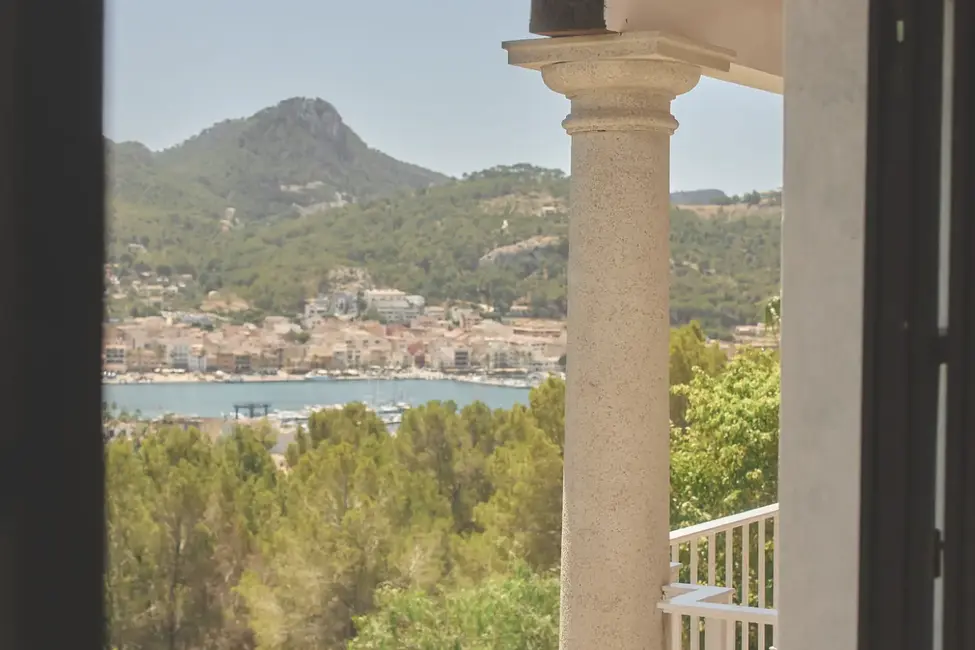Der Ausblick aus der Wohnung, die einem Hausgefühl gleich kommt, verfügt über einen atemberaubenden Panoramablick auf die Hügeln des Tramuntanagebriges und des Hafens von Port Andratx.